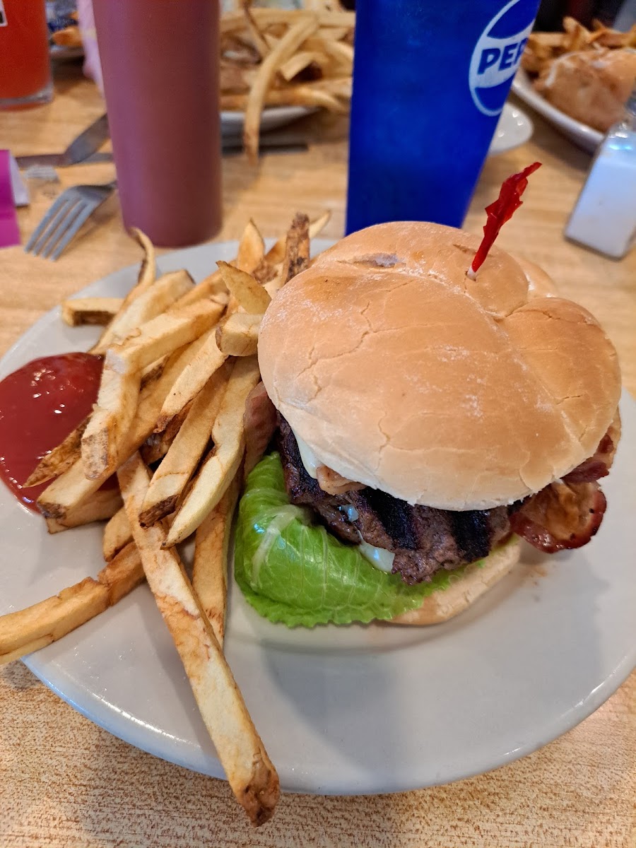 Walk in and find yourself a table at this family friendly restaurant. They have multiple tables that sit 5+ people and what also seemed like a separated room for events. The service was great. I've only been to this establishment once but the consensus at my table was that the food was "Par". The steak and cheese sub I ordered was unfortunately cold and soggy. My wife's food was also cold. Otherwise it would have been great, so I'm giving the food 3 stars. The establishment had a golf simulator (it was not in operation while I was there) and they also had several dart boards. The bar area of the restaurant and the main seating area of the restaurant had two different vibes. The bar area seemed to be trying to capture the "Sports Bar" theme and the main seating area had a northern Maine old fashioned family restaurant vibe. Overall good experience and would recommend.